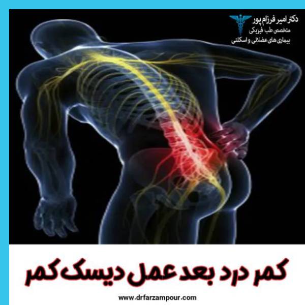 جراحی دیسک کمر با هدف کاهش فشار روی ریشه ‌های عصبی و بهبود درد انجام می ‌شود. اما در برخی بیماران ، با وجود آنکه عمل جراحی به ‌درستی و با موفقیت انجام شده است ، کمر درد پس از عمل دیسک کمر یا بازگشت علائم در ناحیه پا و کمر مشاهده می ‌شود. این وضعیت در اصطلاح پزشکی به نام سندروم کمر درد پس از جراحی کمر یا Failed Back Surgery Syndrome (FBSS) شناخته می ‌شود. کمر درد پس از جراحی دیسک کمر می ‌تواند کیفیت زندگی و توانایی انجام فعالیت ‌های روزمره را تحت‌ تأثیر قرار دهد و نیازمند بررسی دقیق و درمان صحیح توسط متخصص طب فیزیکی کرج است.کمر درد بعد عمل دیسک کمر - دکتر امیر فرزام پور
